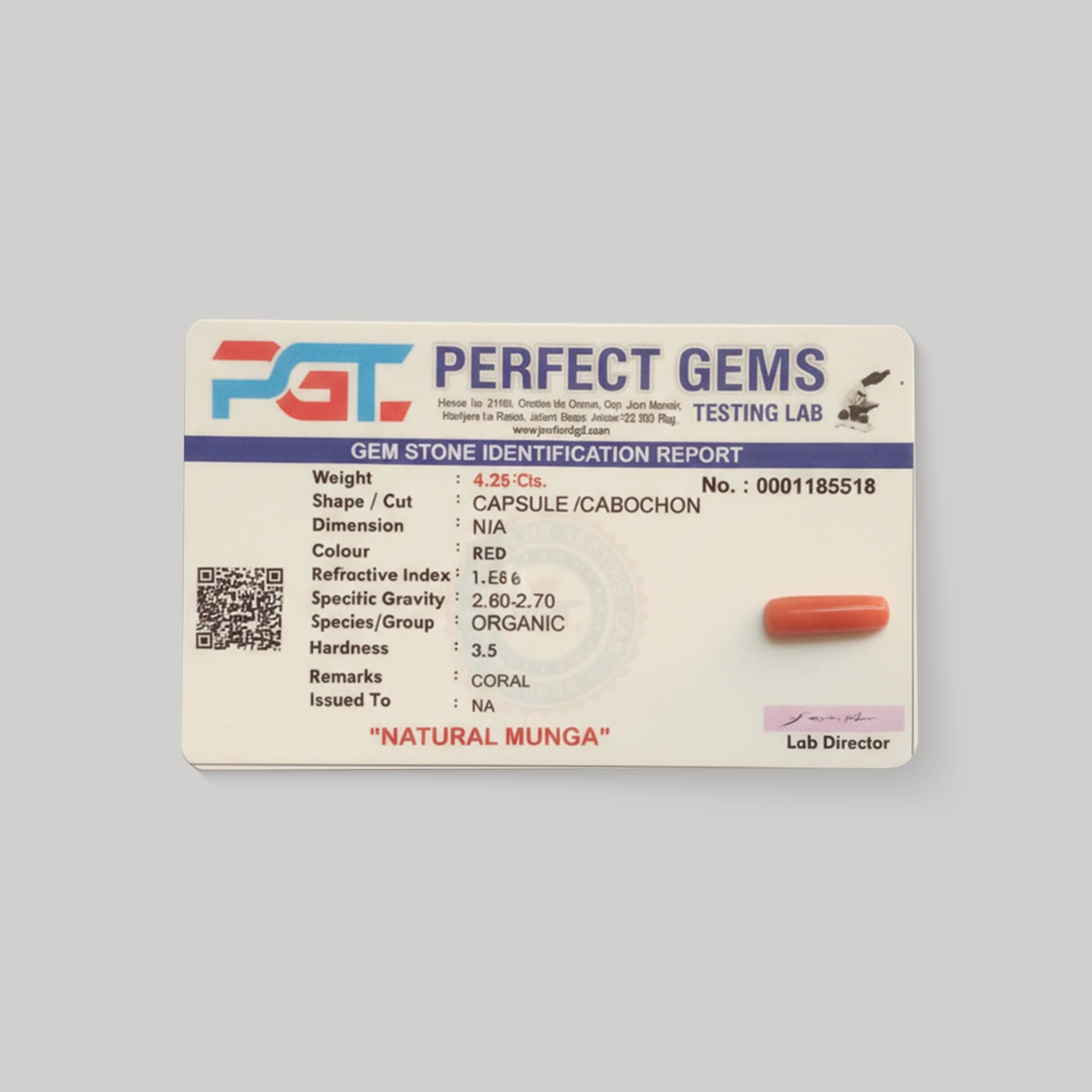 - Red Coral : Greater than 2 Carats