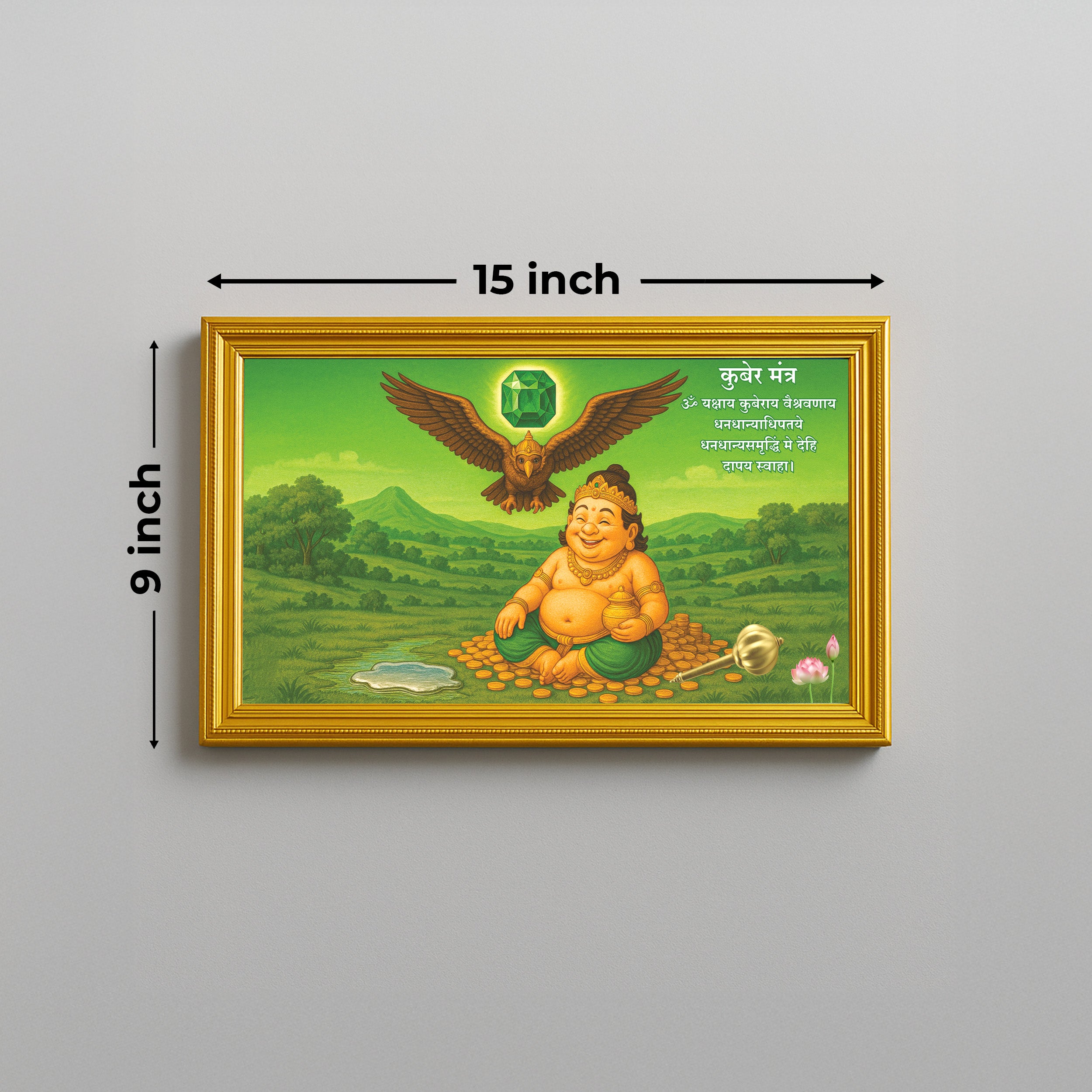 Kubera, the Lord of Wealth, is revered as the treasurer of the gods. This poster invokes prosperity, abundance, and financial growth in your household or business.