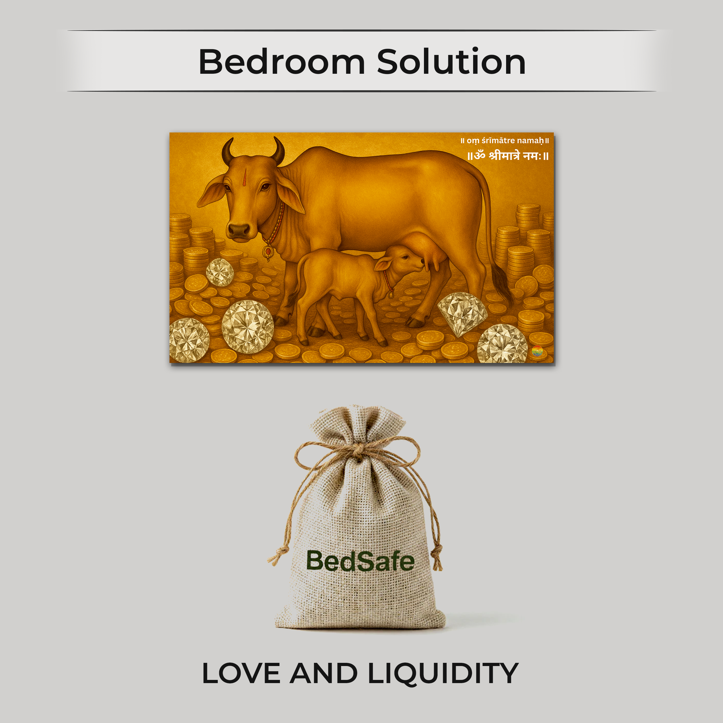 The Cow–Calf Diamond Poster activates Venusian love, nurturing, and emotional softness, while the Bed Safe stabilizes the shared sleeping zone. Together, they help transform the bedroom into a space that supports.