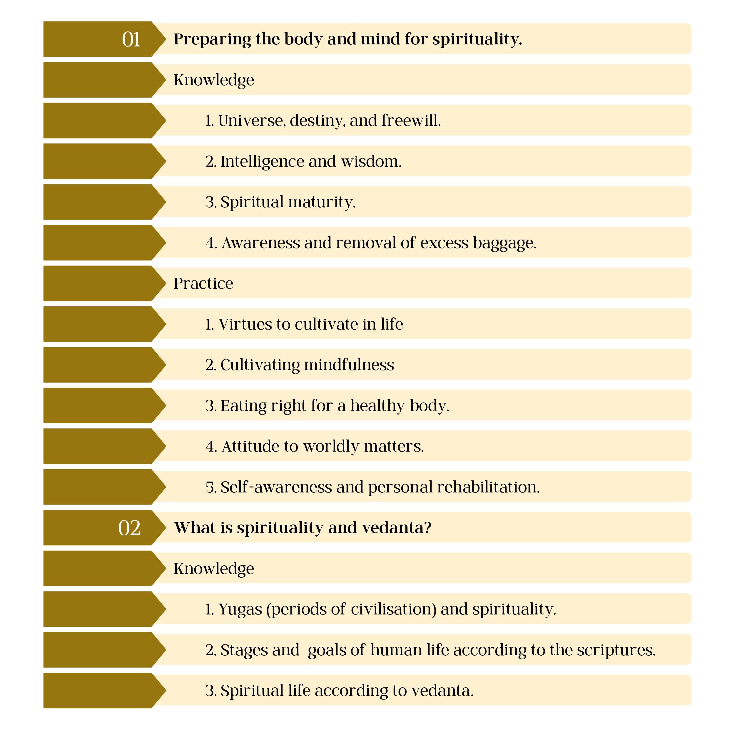 The book focuses on practical spirituality. It shows how spiritual understanding can be applied in daily situations such as managing emotions, developing awareness, and living with clarity rather than staying at a theoretical level.