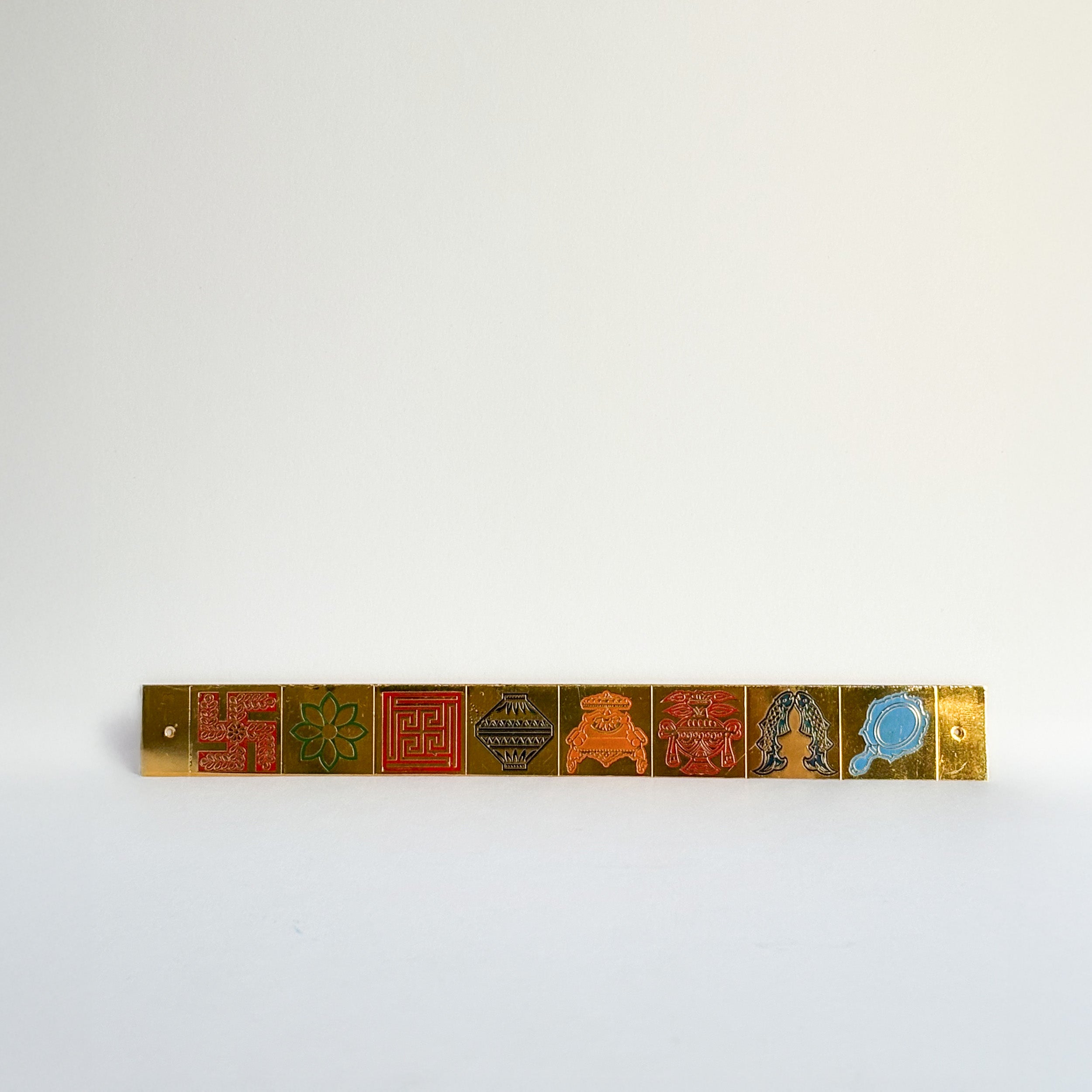 A brass strip featuring the eight sacred symbols of prosperity, peace, and divine protection — a timeless symbol of auspiciousness.