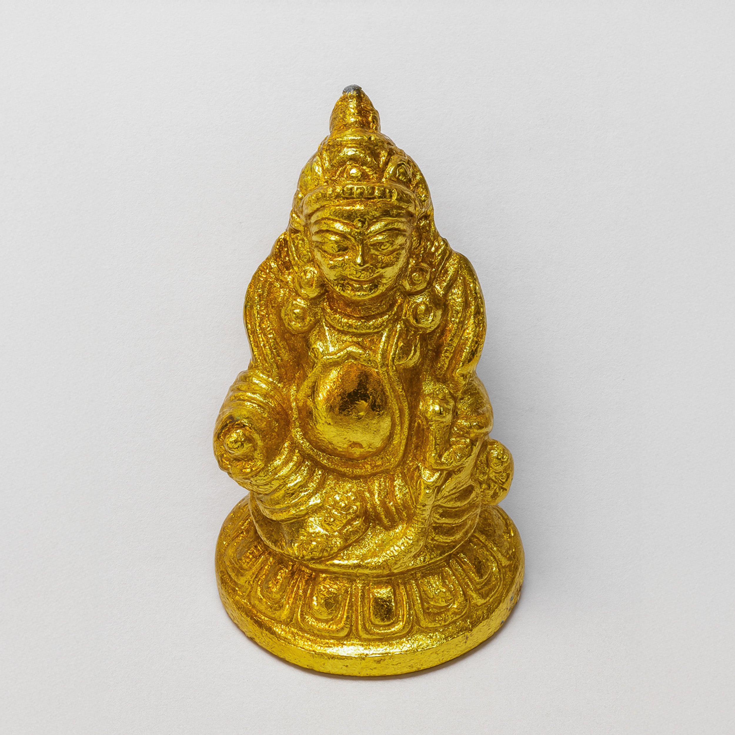 An intricately crafted brass idol of Lord Kuber, the celestial treasurer of wealth. It embodies abundance and prosperity.