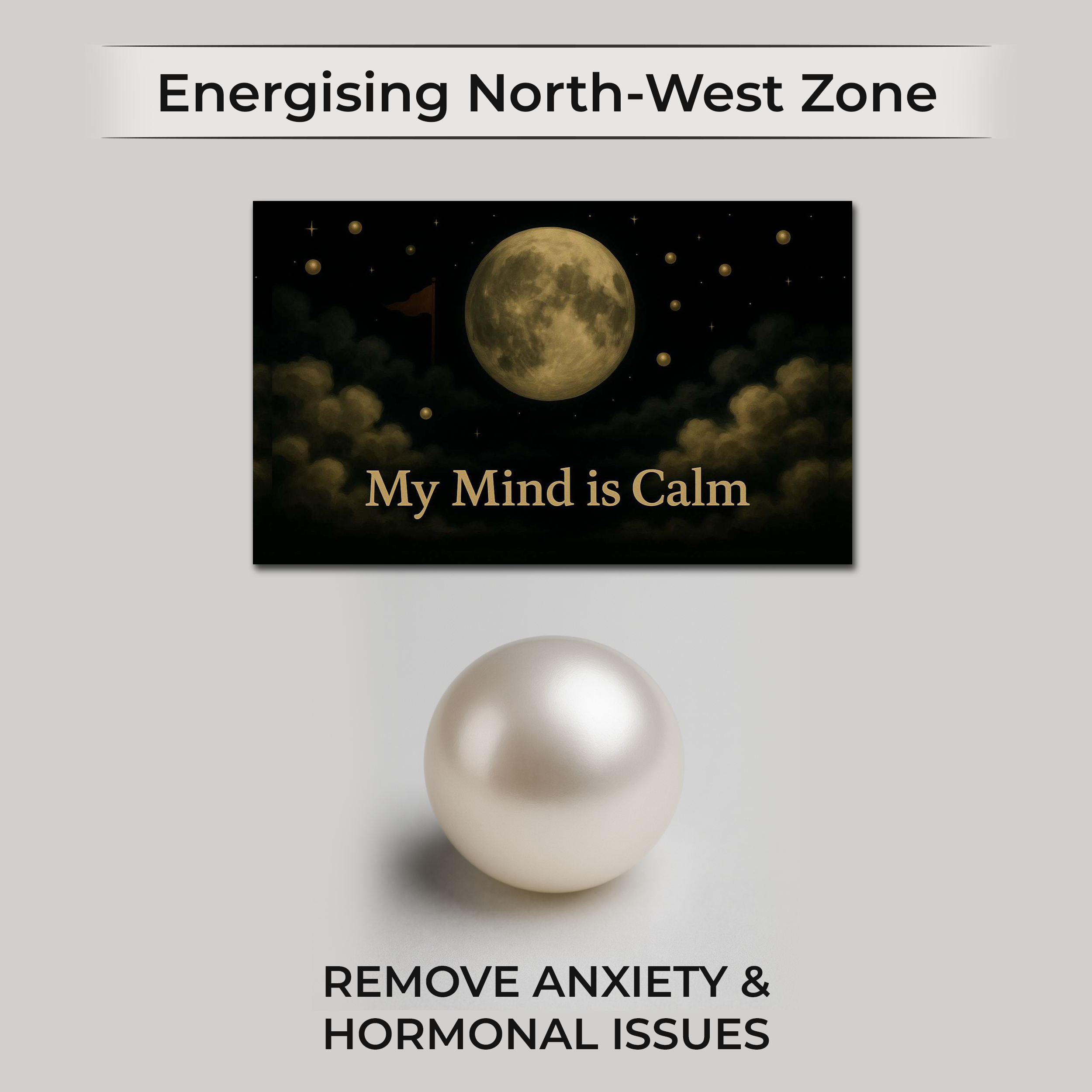 The Moon Poster with Pearl is a gentle yet profoundly effective Vedic Vastu remedy designed to soothe the mind, regulate emotional fluctuations, and support hormonal balance. Anchored in the wisdom of Vastu Shastra, this remedy works primarily through the Northwest (Vāyavya) zone, a direction closely associated with movement of thoughts, emotions, hormones, and the nervous system.