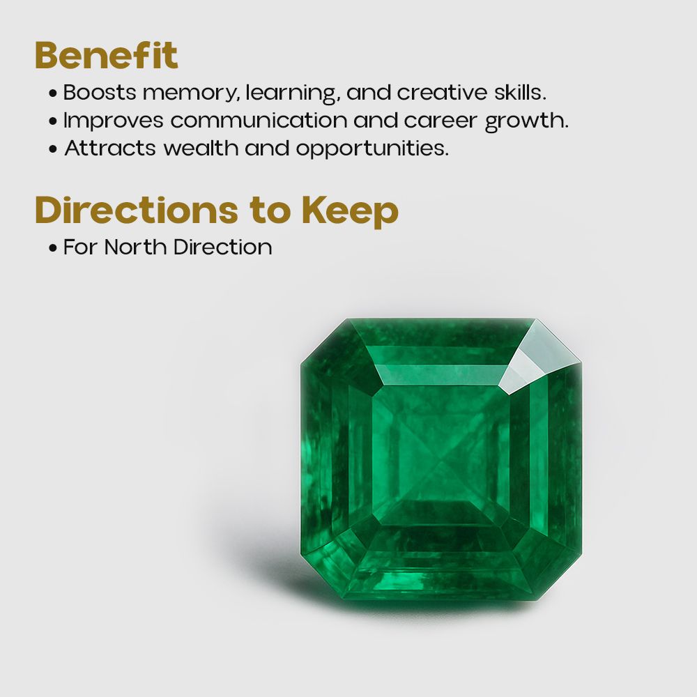 As per Vastu Shastra, the North is governed by Digpal Kuber, the custodian of prosperity, while the Emerald (Panna) enhances intelligence, trade, calculation, and wise expansion. Together, they not only attract wealth, but also prepares the space and mind to receive and retain abundance, exactly as described in the scriptures.