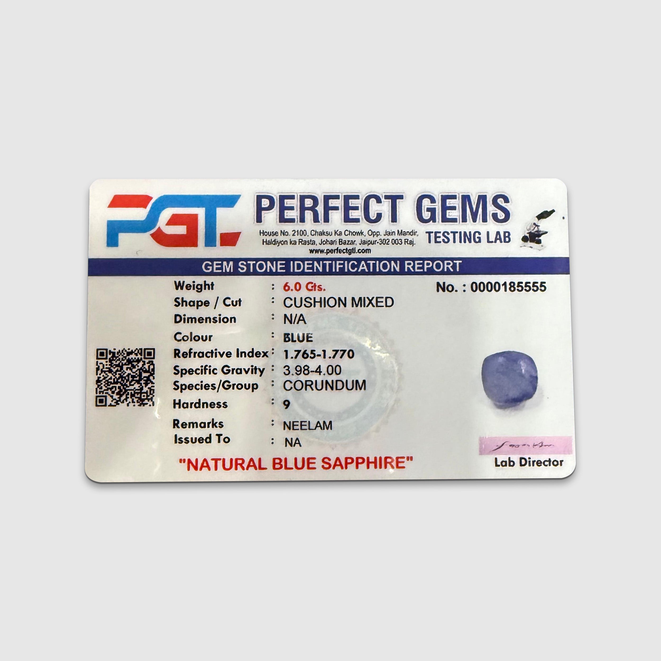 - Blue Sapphire : Greater than 2 Carats
